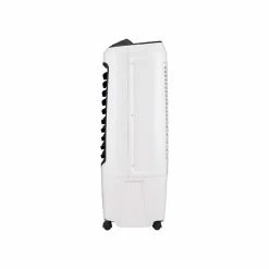 - Portable three-in-one evaporative cooler designed to cool, fan, and humidificate air in small spaces