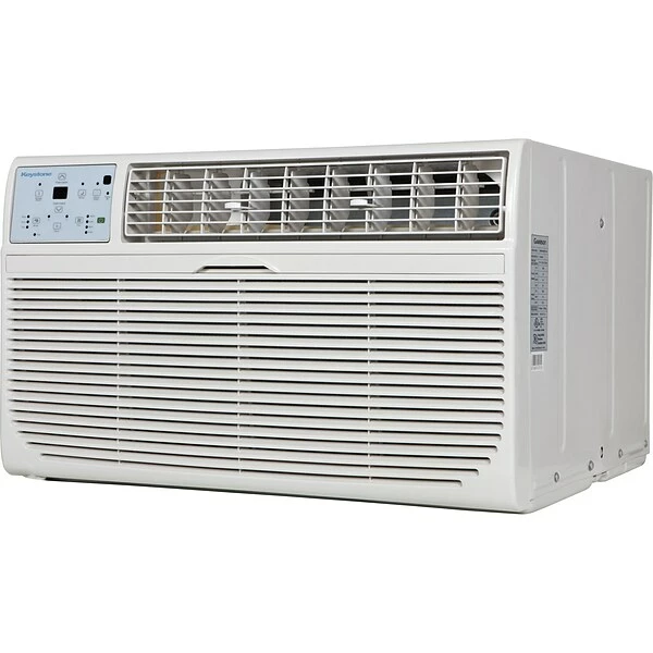 The Keystone 12,000 BTU 230V through-the-wall air conditioner with “Follow Me” remote control is perfect for cooling a room up to 550 square feet. It has electronic controls with LED display and a temperature sensing LCD remote control allowing you to conveniently see, set and maintain the room temperature from across the room. Money saving features include energy saver mode, sleep mode and a programmable 24-hour timer. Plus quiet operation (56.5 dB on low) helps you get a good night’s sleep. This unit isdesigned for through-the-wall installation and is not designed for standard window installation (WALL SLEEVE SOLD SEPARATELY). This unit also requires a special 230V electrical outlet and will not operate with a standard 115V household electrical outlet.