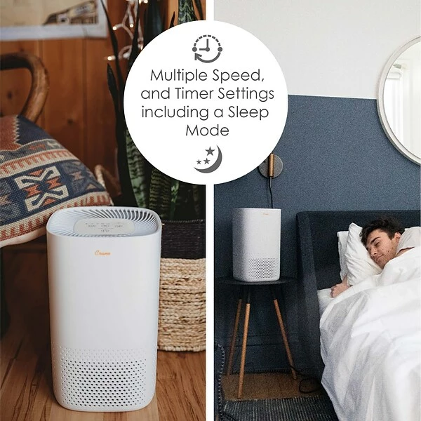 - Timer function allows setting the air purifier to run for 2, 4, or 8 hours before automatically shutting off