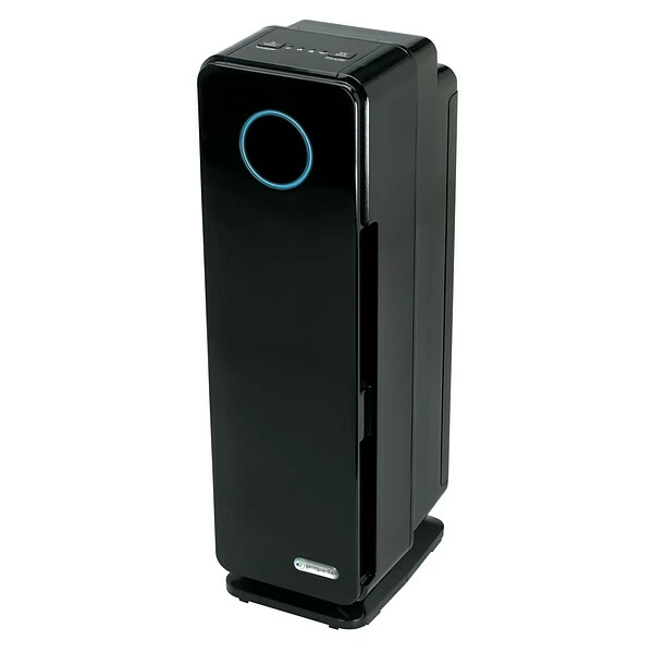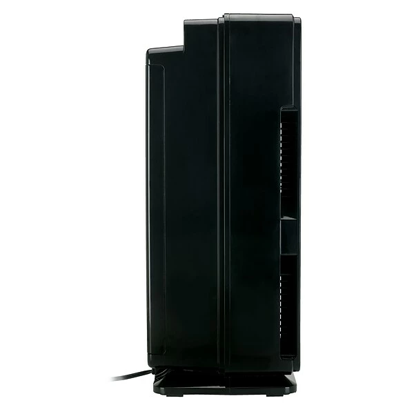 The 3-in-1 Air Purifier with True HEPA Filter is perfect for allergy sufferers. True HEPA captures 99.97% of allergens including pet dander, dust mites and pollen. The Pet Pure is an antimicrobial agent added to the filter to inhibit the growth of mold, mildew and odor-causing bacteria on the surface of the filter. More than just a filter, the UV-C light kills germs, while the charcoal filter captures odors. CADR Rated 100+ and standing 22 inches tall, it is lightweight and ideal to use in small to medium sized rooms. The easy to use electronic controls include UV-C control and a filter change indicator. Choose from 3 speeds, including a low speed that runs ultra-quiet. The Elite Collection provides both form and function to provide a superior air cleaning system. The simple, stylish design looks great in any home environment.
