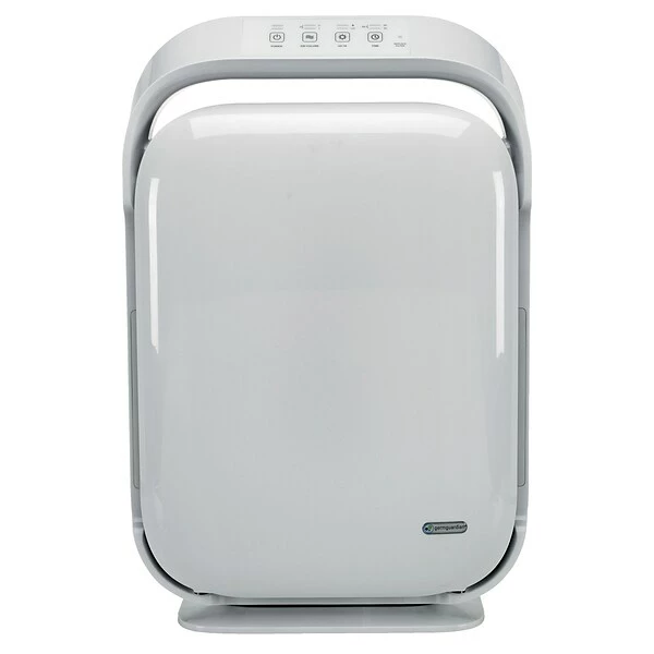 Allergens, germs and odors, beware! The Hi-Performance Air Purifier is ideal for allergy sufferers. A True HEPA filter relieves allergies by capturing 99.97% of dust and allergens down to .3 microns. A large activated granular carbon filter attacks smoke, cooking and pets odors along with harmful VOC’s emitted by common household products. UV-C light technology kills germs and mold spores. An optional ionizer can be turned on to boost allergen control. The purifier is ideal for rooms up to 378 sq. feet. CADR ratings are high with 244 (smoke); 310 (dust) and 346 (pollen).