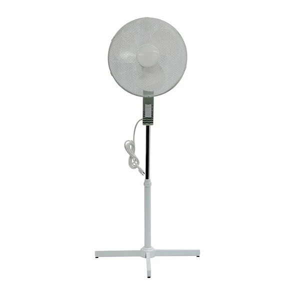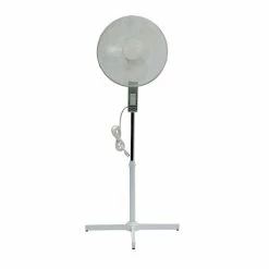 The TPI OSF16 16″ workstation oscillating stand fan in white, has plastic housing and blade for long life durability. The fan with 2100 CFM, features 3-speed motor with push-button controls and the height is adjustable up to 40″. It has a voltage rating of 120 V and current rating of 0.5 A. It is perfect for homes and offices. It includes white powder-coated wire mesh guards, 3 plastic fan blades, 3 conductor SPT cord and plug.