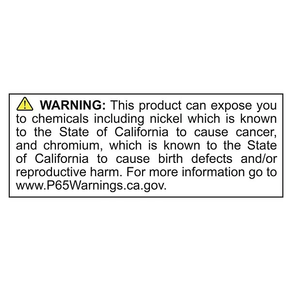 - ⚠ WARNING: This product can expose you to chemicals including nickel which is known to the State of California to cause cancer, and chromium which is known to the State of California to cause birth defects and/or reproductive harm. For information go to www.P65Warnings.ca.gov
