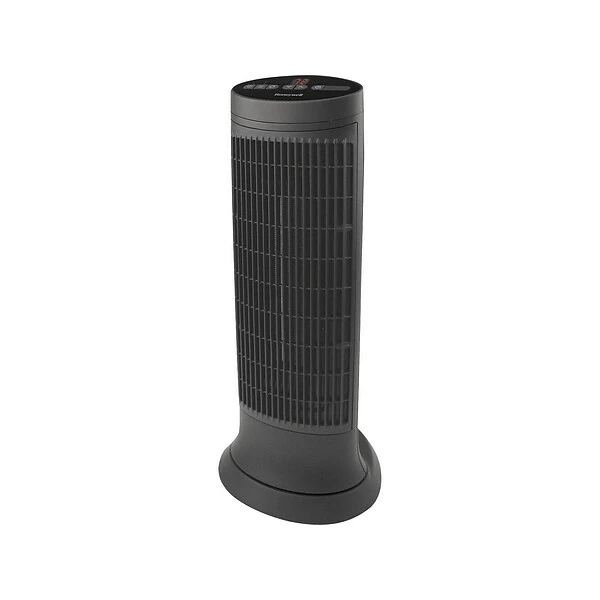 Enhance comfort and stay warm during work hours or relaxation with this tower heater. The programmable thermostat monitors output to maintain desired temperatures, while a large LCD display is clearly visible and easy to read. Overheat protection and a tip-over switch prevent fires, and a permanent filter keeps dust or particles out of the heater. Convenient digital controls and hour time settings enable customized operation, and the recessed handle along with cool-touch housing let you relocate the heater safely. The ceramic heating element generates up to 1500 watts of heat, while wide-range oscillation spreads warmth evenly throughout the room. This slim Honeywell tower heater fits in corners or other tight spaces, and the sturdy base resists tipping.