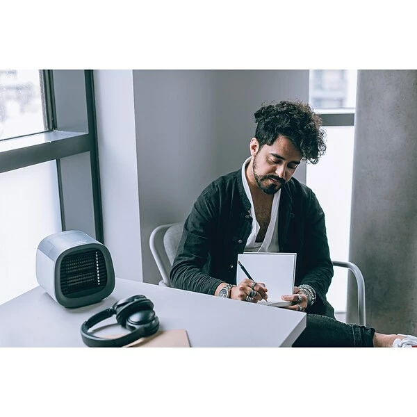 - Natural personal cooling; efficiently cools personal space using evaporative technology; ideal solution for hot, dry climates; unlike personal air conditioners, doesn’t use Freon-like liquids