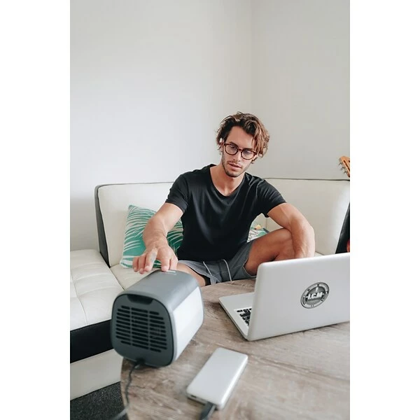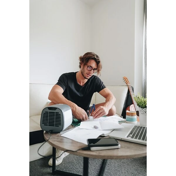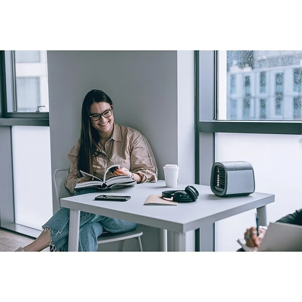 The Urban Gray Evapolar evaCHILL Personal Evaporative Air Cooler and Humidifier is Evapolar’s best-selling personal evaporative air cooler that cools, purifies, and humidifies the air. It has a sleek, minimalist design, sophisticated functionality, and a powerful cooling effect. The evaChill air cooler was created to cool down exclusively the personal area only in front of you. It does not waste tons of energy to cool down the whole room. Powered by unique evaBREEZE technology, the evaCHILL air cooler can achieve a cooling effect up to 44.6°F to 50°F degrees (7°C to 10°C) depending on the humidity level. It is ideal for sleeping time, resting, traveling, and working. Created as a whisper-quiet personal cooling solution, it is a must-have device for hot sleepers. Portable and USB-powered, it creates your personal micro-climate wherever you are. Enjoy the coolness effect as long as it is connected to an electricity source—a socket, a power bank, a laptop, etc. Forget about installation costs, unlike with an AC unit! Just add water, connect the device to power and enjoy the fresh air. Control the airflow with 1 button and enjoy the fresh air for up to 6 to 8 hours. The device also has an LED light for a cozy atmosphere and is an ideal bedside lamp. Breathe pure and fresh air thanks to the long-lasting biodegradable basalt fibers inside the cartridge. They filter out the dust in the air and retain water for more efficient cooling and humidifying.