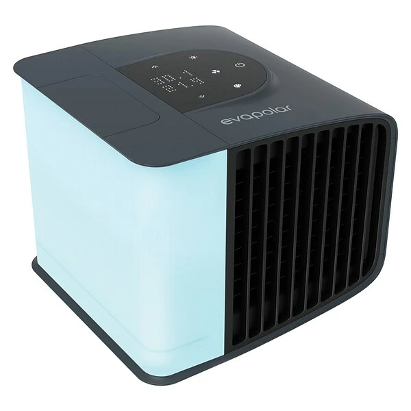 Evapolar’s Stormy Gray evaSMART is an intelligent personal evaporative air cooler with smart home and mobile app control, removable water tank, and full-spectrum LED light. Engineered as a 3-in-1 cooling device, it cools, purifies, and humidifies the air. It has a sleek minimalist design, sophisticated functionality, and powerful cooling. evaSMART is fully compatible with Amazon Alexa and Google Home and can be remotely controlled via mobile app, making it ideal for taking care of your pets and kids while you’re away. Created to cool down the personal area only in front of you, the evaSMART air cooler won’t waste tons of energy trying to cool the whole room. Powered by unique evaBREEZE technology, the air cooler can decrease outcoming air temperature up to 44.6°F to 50°F, depending on the humidity level. This portable and USB-powered smart air cooler is ideal for sleeping, resting, and working in the office and from home. Created as a whisper-quiet personal cooling solution, it is a must-have device for hot sleepers and creates your personal micro-climate wherever you are. Just add water, connect the device to power (an electricity source—a socket, a power bank, a laptop, etc.), and enjoy the fresh air. You can control the airflow and the LED lighting via the device’s touchscreen, smart assistants, or the mobile app. Breathe pure and fresh air, thanks to the long-lasting biodegradable basalt fibers inside the cartridge. They filter out the dust in the air and retain water for more efficient cooling and humidifying.