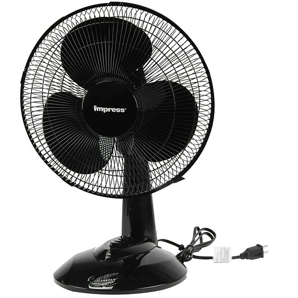 Impress Oscillating table fan with 90 deg oscillation provides 3-speeds plus oscillation for better air flow. Fan has a dimension of 14″ x 7″ x 14″ and weighs 12 lbs.