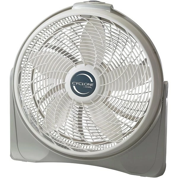 Lasko® Cyclone® Fan has 3 speeds with high performance feature and measures 20″. Fan has its controls at the top and can be mounted on the wall making its usability easier. Fan portability is done with the help of easy carry handle.